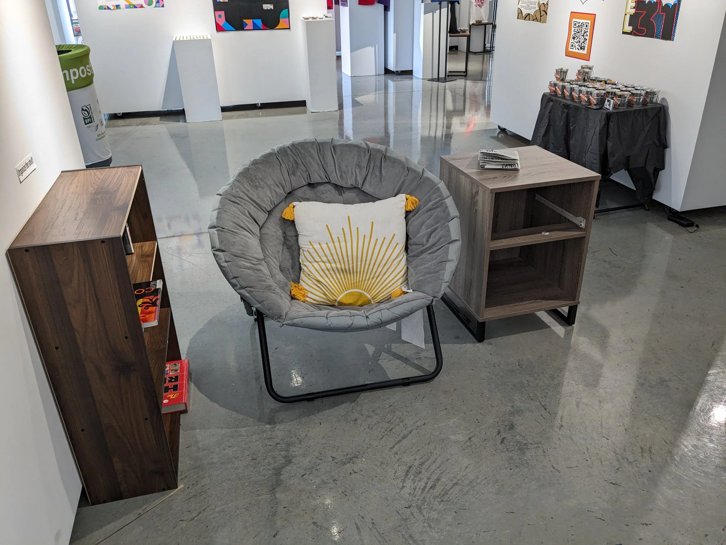 To accomplish this, I decided that I wanted to create a domestic space to represent how OCD affects people in their everyday lives. In order to create the experience of intrusive thoughts and compulsions, I decided that I would make a game or challenge out of it, hence, “The Centipede Challenge”. The challenge worked like this: the audience would interact with the exhibit per usual, but whenever they saw any imagery or mention of centipedes, they would have to go to the back wall, labeled “Sanitation Station”, go to one of the areas on the wall, and follow the directions that were posted near said area. They would partake in this task until they were no longer thinking about centipedes, and then they would continue to go about the exhibition as they were before.